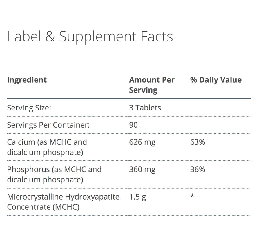 Bone Builder® provides bone health support with microcrystalline hydroxyapatite concentrate (MCHC), a highly absorbable crystalline compound comprised of naturally occurring components of bone which is backed by more than 30 years of research. MCHC contains naturally occurring calcium, phosphorus, and trace amounts of other minerals, bone growth factors, collagen and other vital bone proteins. This well-rounded formula is designed to support bone mineral density. Ideal for those who prefer tablets.*
