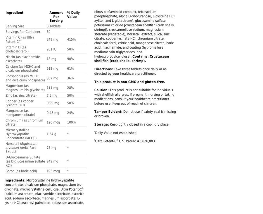 Bone Builder® Active provides bone health support with microcrystalline hydroxyapatite concentrate (MCHC), a highly absorbable crystalline compound that provides naturally occurring components of bone and is backed by more than 30 years of research. MCHC contains naturally occurring calcium, phosphorus, trace amounts of other minerals, bone growth factors, and collagen and other vital bone proteins. This well-rounded formula is designed to support bone mineral density, and also features vitamin D, additional minerals, glucosamine, and vitamin C for enhanced bone and joint health support.*